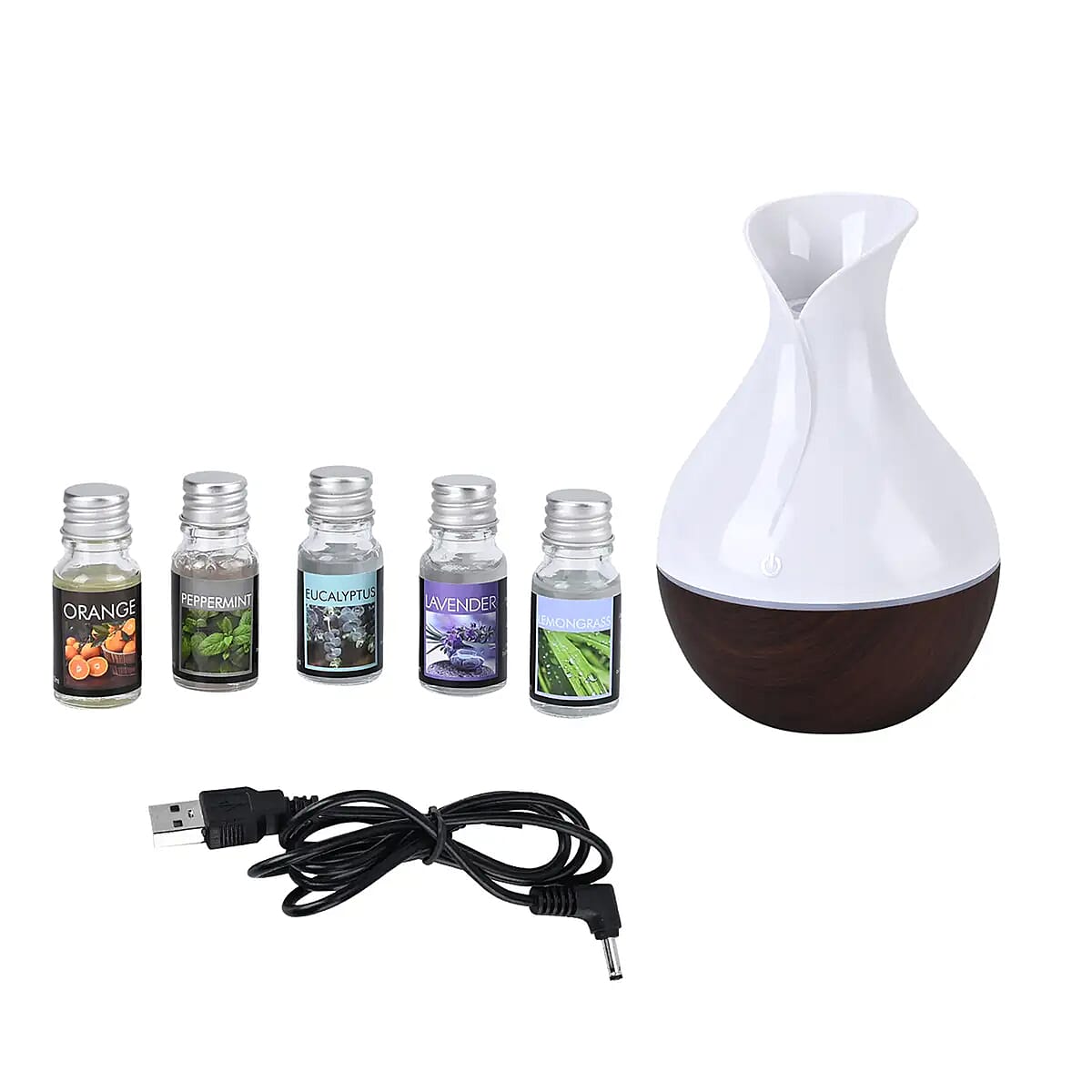 Portable Mini Air Humidifier with 5 Essential Oil and RGB Light (3.94"x3.94"x5.91") (Powered by USB Cable)