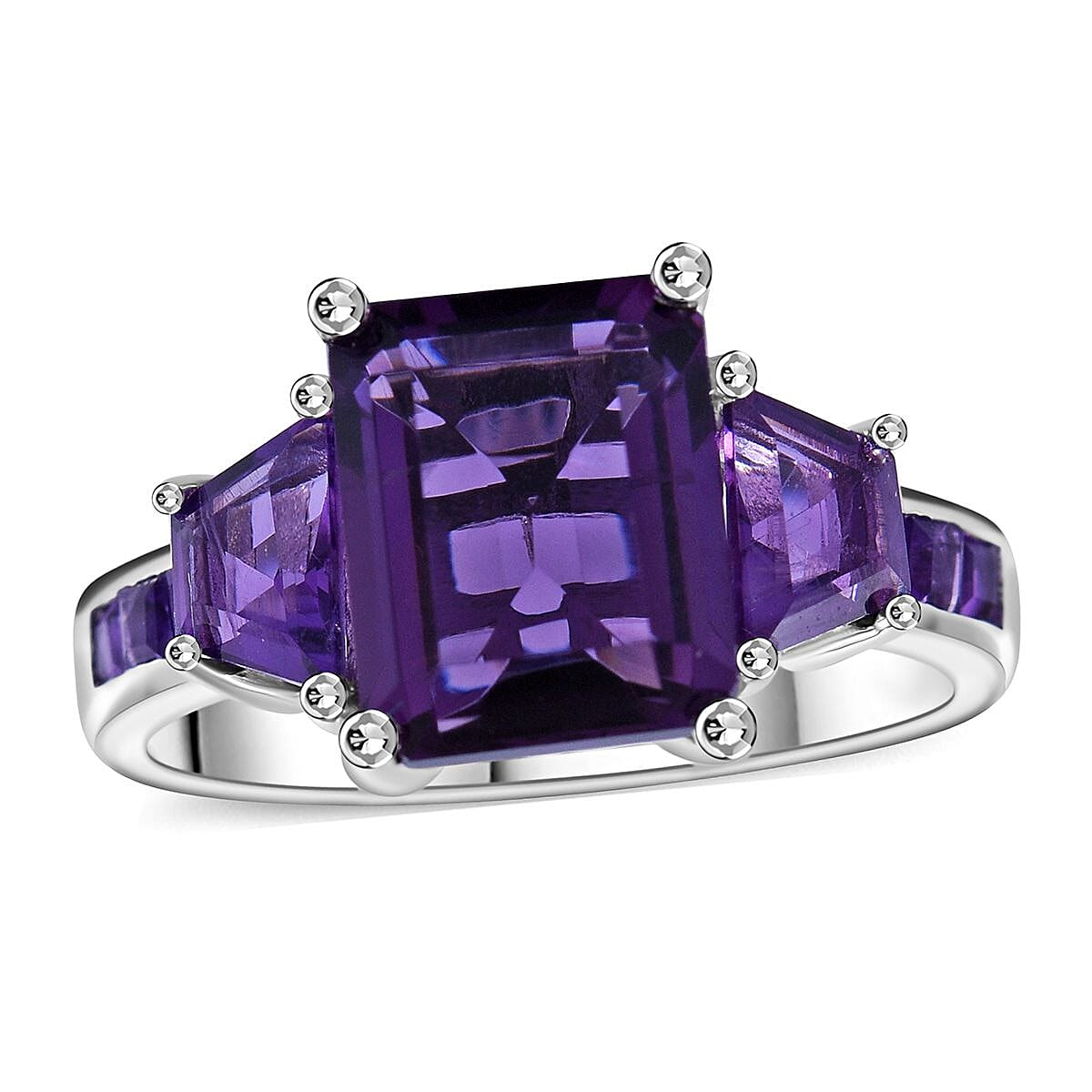 Premium African Amethyst Ring in Platinum Over Sterling Silver (Size 5.0) 4.60 ctw