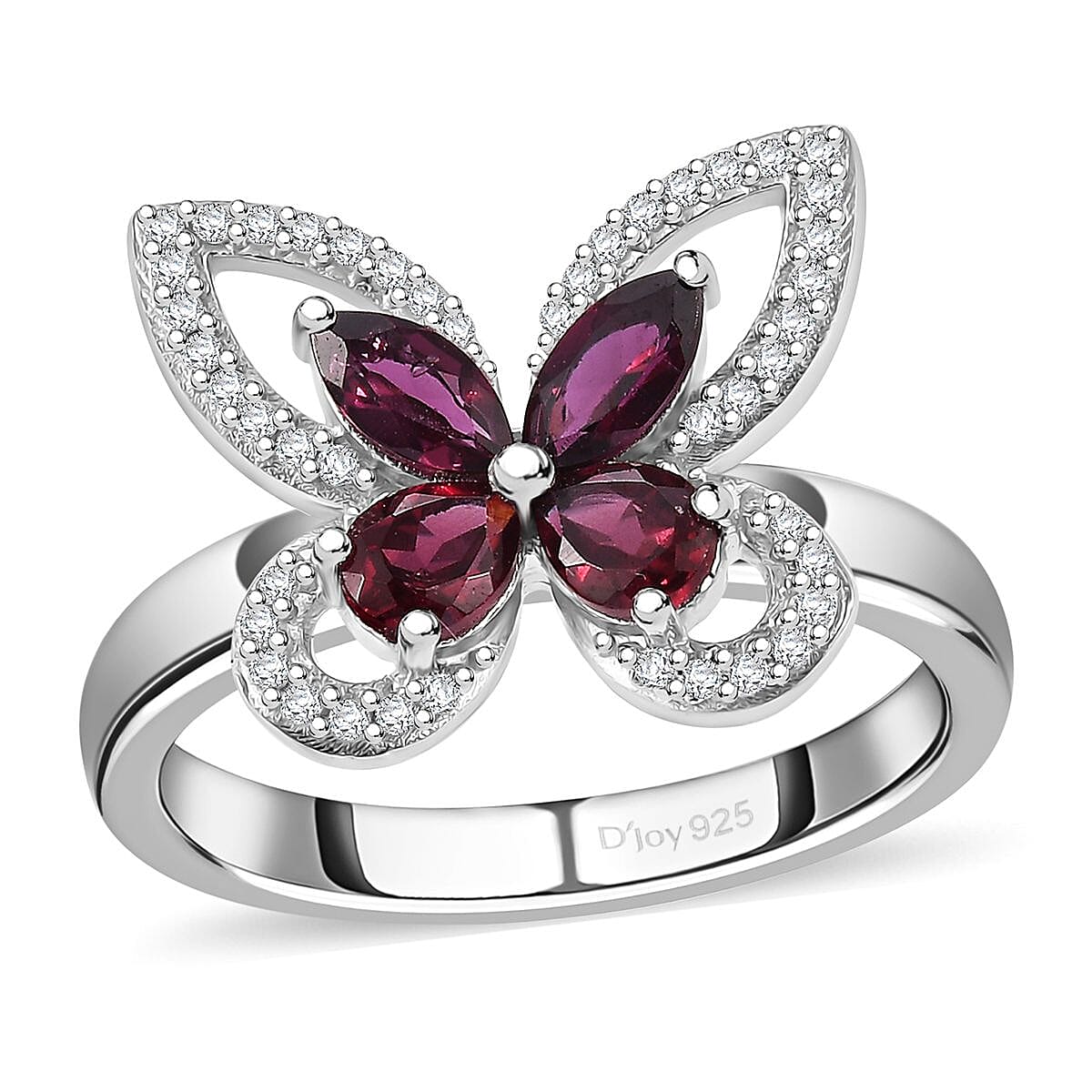 The butterfly inspires this premium Anthill garnet and white zircon ring in sterling silver. The Anthill garnet, known for its rich hue, is accented with white zircon to enhance the design. Crafted in sterling silver with a premium finish, all gemstones are securely set in prong settings for durability.