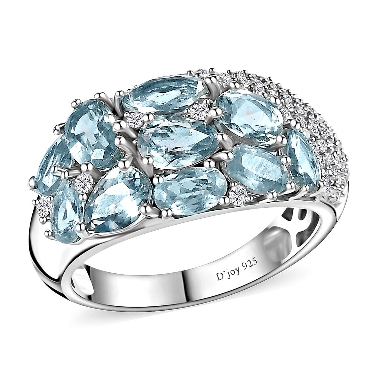 Premium Aqua Kyanite and Moissanite Ring in Platinum Over Sterling Silver (Size 8.0) 4.40 ctw