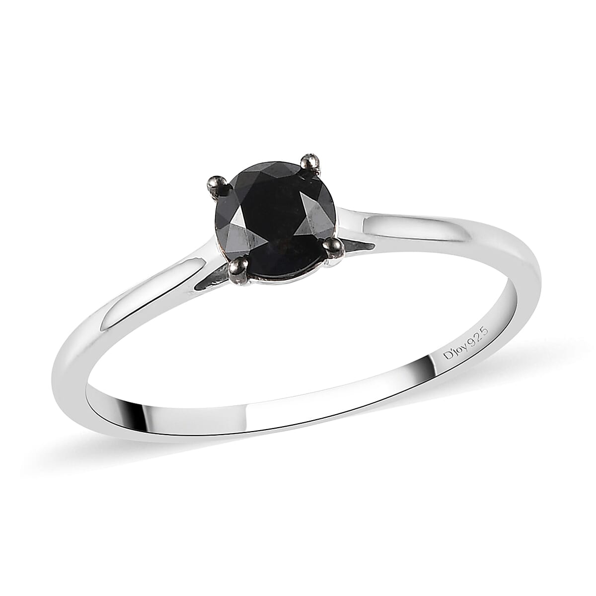 Premium Black Diamond Solitaire Ring in Platinum Over Sterling Silver (Size 8.0) 1.00 ctw