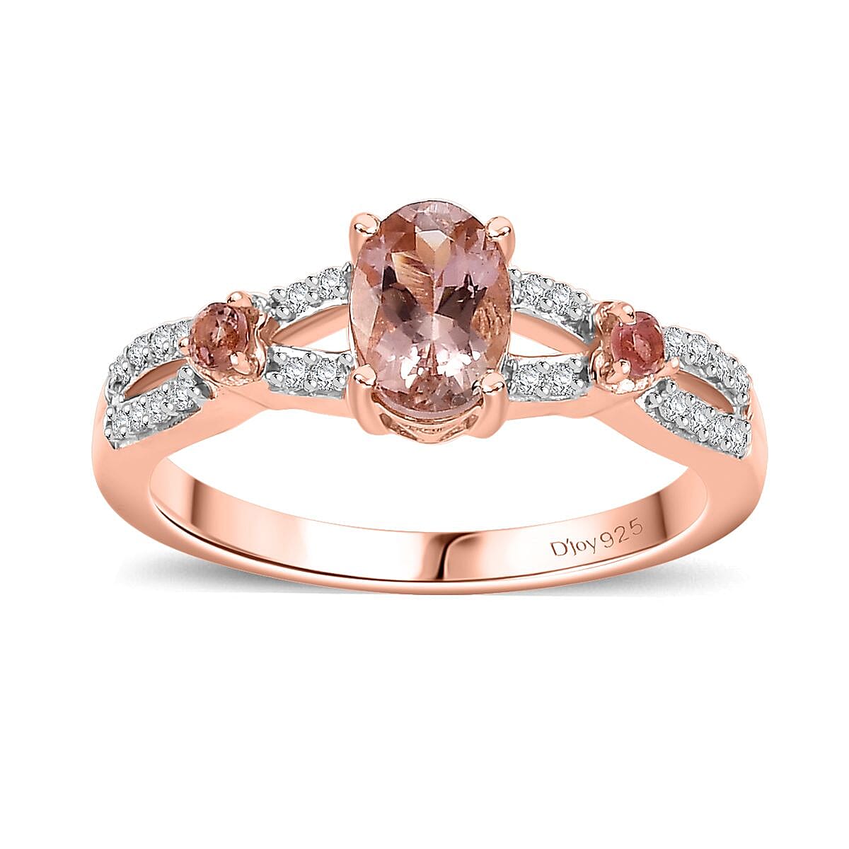 This premium ring features a blush tourmaline gemstone accented with moissanite set in durable sterling silver. The blush tourmaline's soft hue adds elegance to the piece, while the moissanite provides lasting shine. The prong setting ensures that the gemstones are prominently displayed, making this ring a striking accessory.