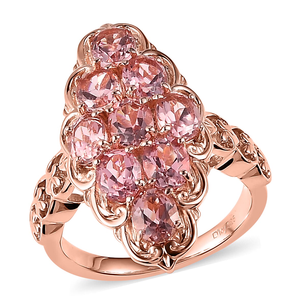 Premium Blush Tourmaline Elongated Ring in Vermeil Rose Gold Over Sterling Silver 3.40 ctw (Del. in 7-10 Days)