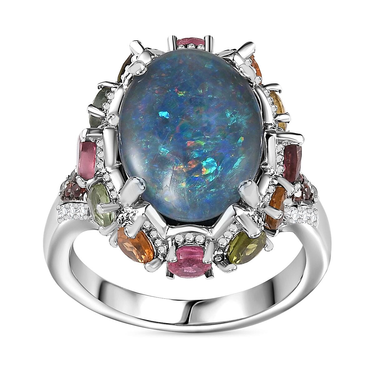 Premium Boulder Opal Triplet and Multi Gemstone Ring in Platinum Over Sterling Silver (Size 8.0) 5.30 ctw