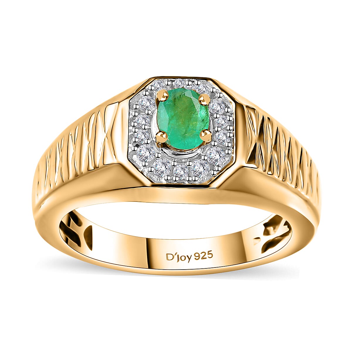Premium Boyaca Colombian Emerald and White Zircon 0.50 ctw Giza Pyramid Men's Ring in 18K Vermeil Yellow Gold Over Sterling Silver (Size 9.0)