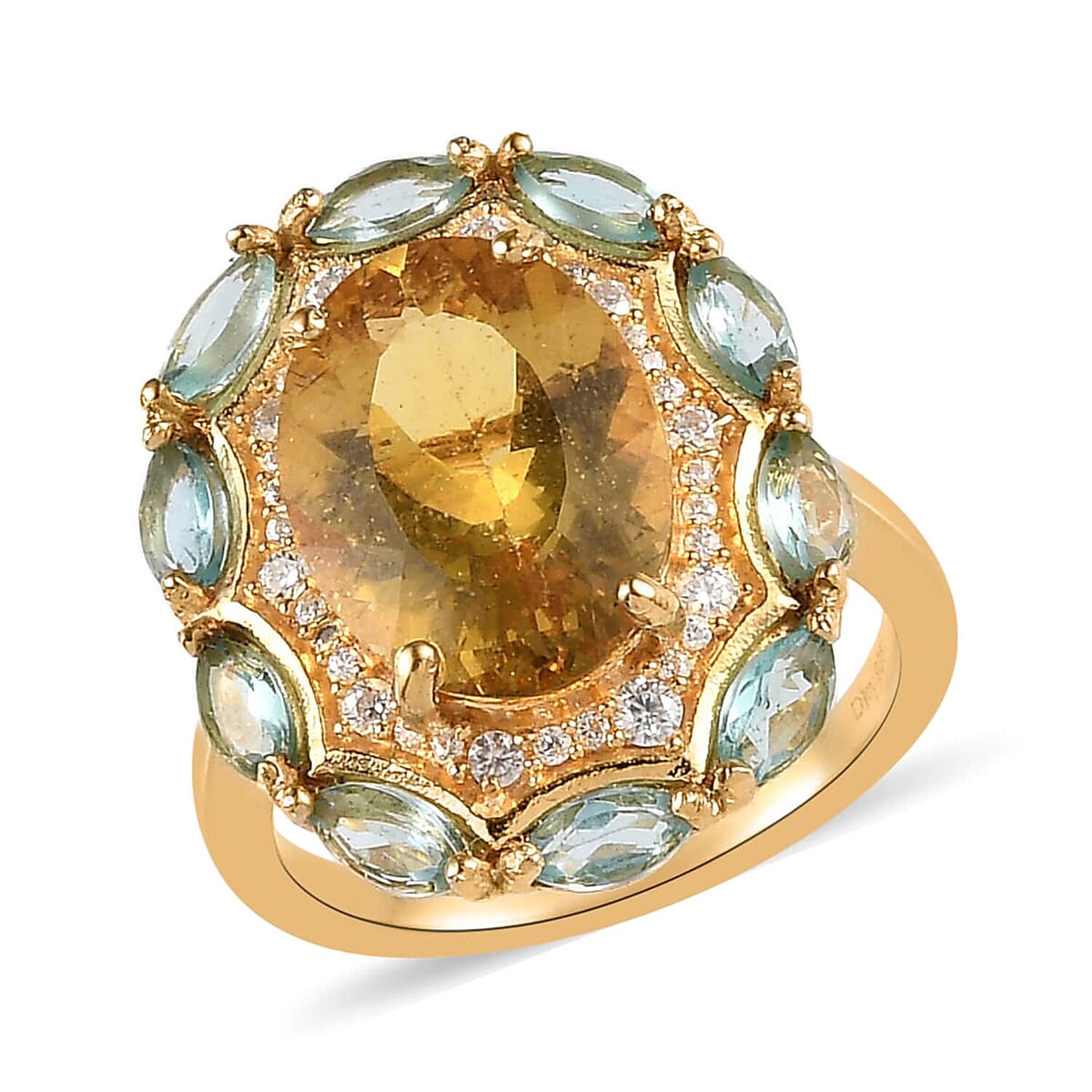 Premium Brazilian Golden Apatite and Multi Gemstone Ring in Vermeil Yellow Gold Over Sterling Silver (Size 8.0) 8.00 ctw