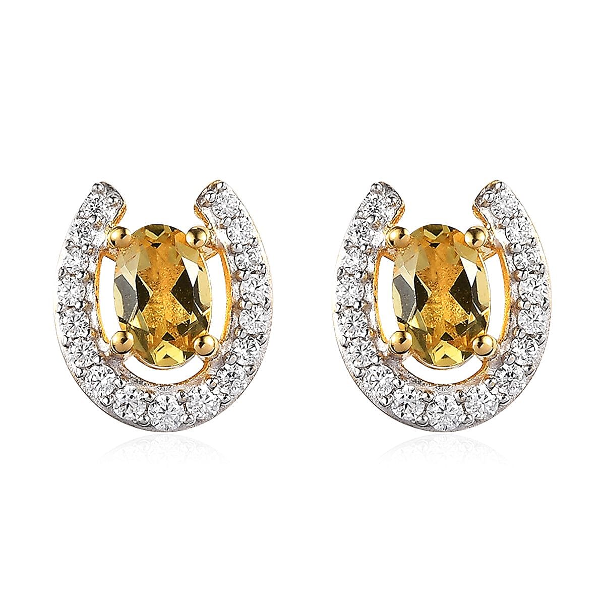 Adorn your ears with the unique brilliance of premium Brazilian heliodor and moissanite horseshoe stud earrings. These sterling silver marvels, bathed in the warmth of vermeil yellow gold plating, showcase an oval Brazilian heliodor gemstone, creating a radiant symphony of light and luxury. Prong-set to perfection and completed with a secure disk and rubber back, these earrings promise to be your cherished companion for every occasion, capturing the essence of sophistication and serendipity.