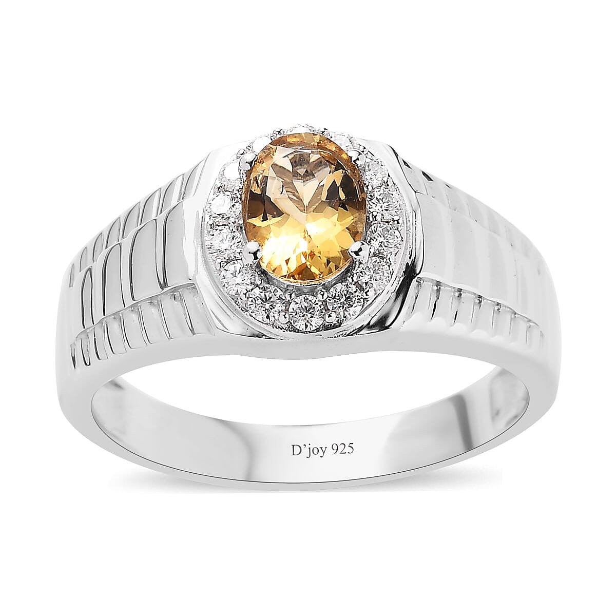 Premium Brazilian Heliodor and Moissanite Men's Ring in Platinum Over Sterling Silver (Size 12.0) 1.85 ctw