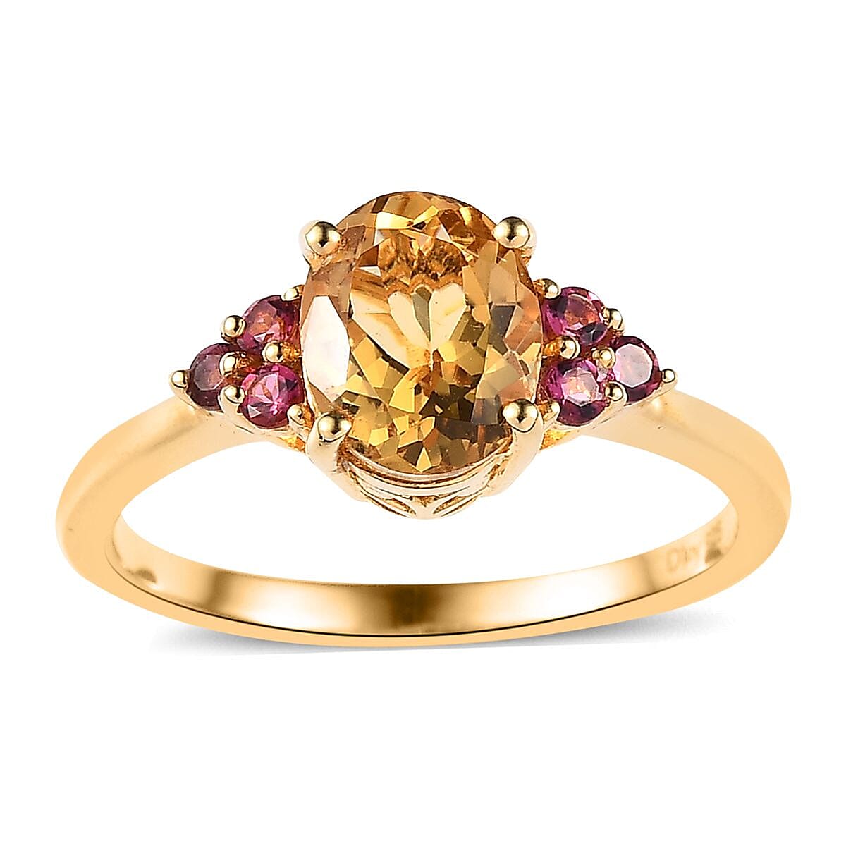 Premium Brazilian Heliodor and Premium Ouro Fino Rubellite Ring in Vermeil Yellow Gold Over Sterling Silver (Size 7.0) 1.75 ctw
