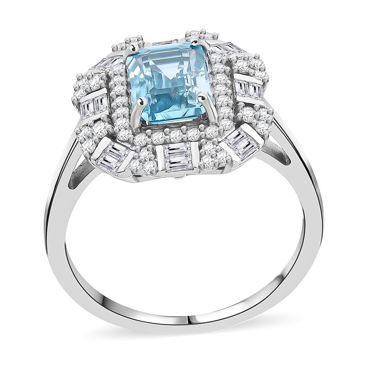 Premium Cambodian Blue Zircon and White Zircon 4.30 ctw Art Deco Ocean Ring in Rhodium Over Sterling Silver (Size 7.0)