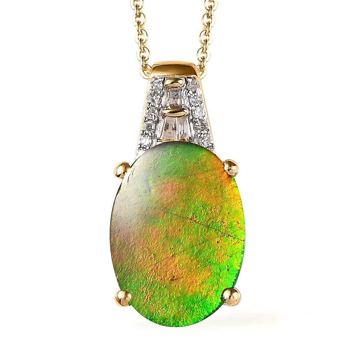 Premium Canadian Ammolite and White Diamond Pendant Necklace 20 Inches in Vermeil Yellow Gold Over Sterling Silver 0.10 ctw
