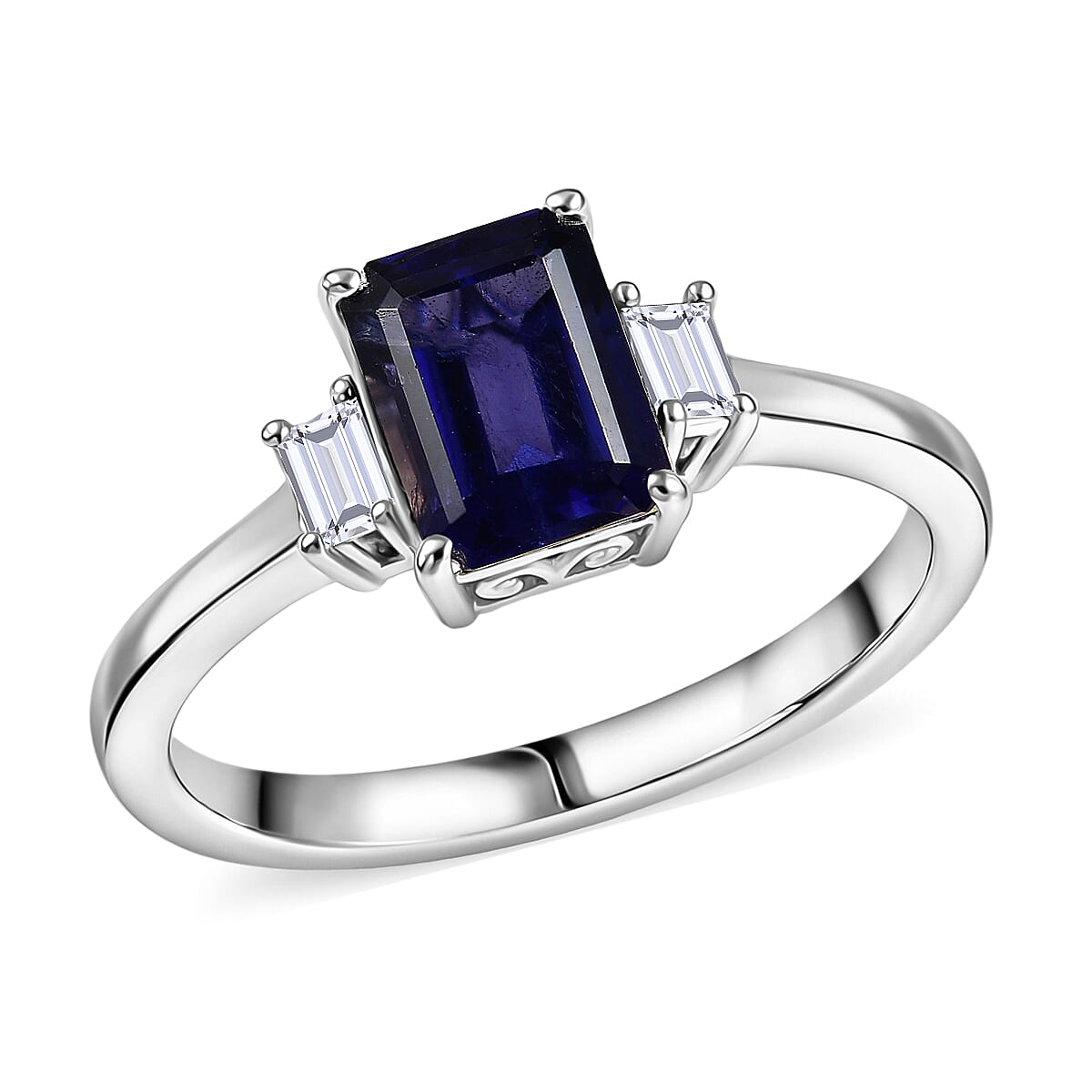 Premium Catalina Iolite and Luxuriant Lab Grown Diamond G-H SI 1.50 ctw Ring in Rhodium Over Sterling Silver (Size 10.0)