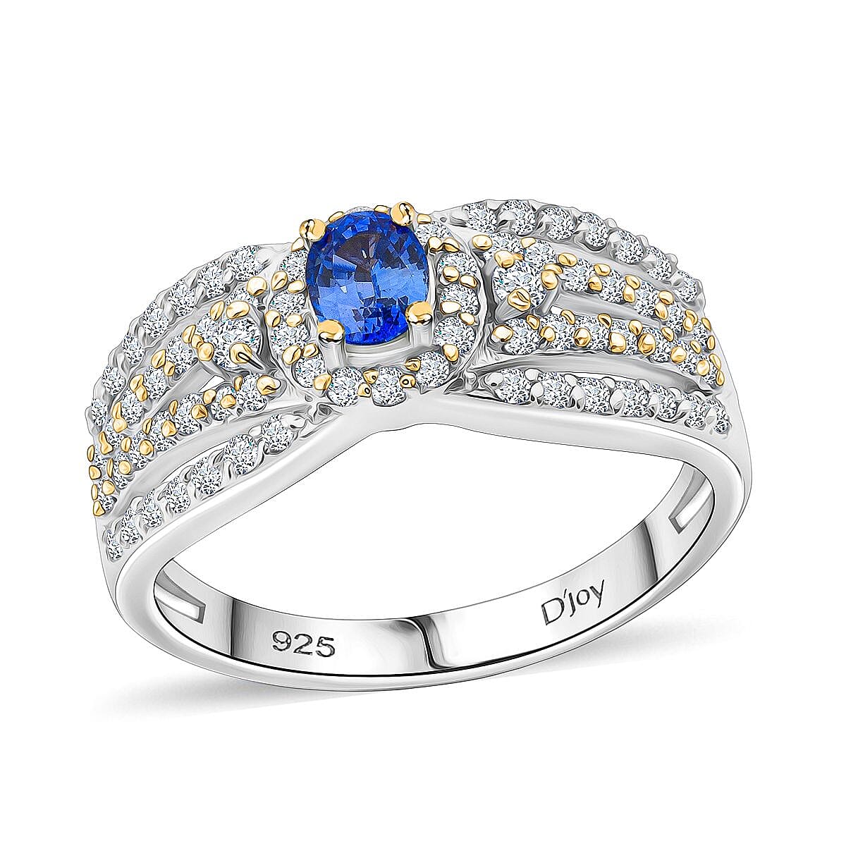 Premium Ceylon Blue Sapphire and Moissanite 1.00 ctw Celestial Crown Ring in Vermeil YG and Rhodium Over Sterling Silver (Size 7.0)