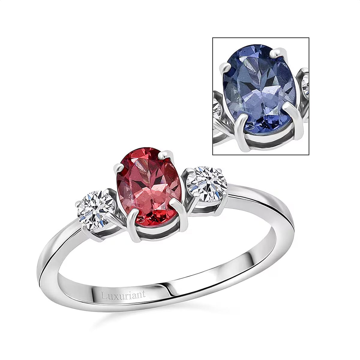 Premium Color Change Garnet and G-H SI Luxuriant Lab Grown Diamond 1.20 ctw Ring in Rhodium Over Sterling Silver (Size 9.0)