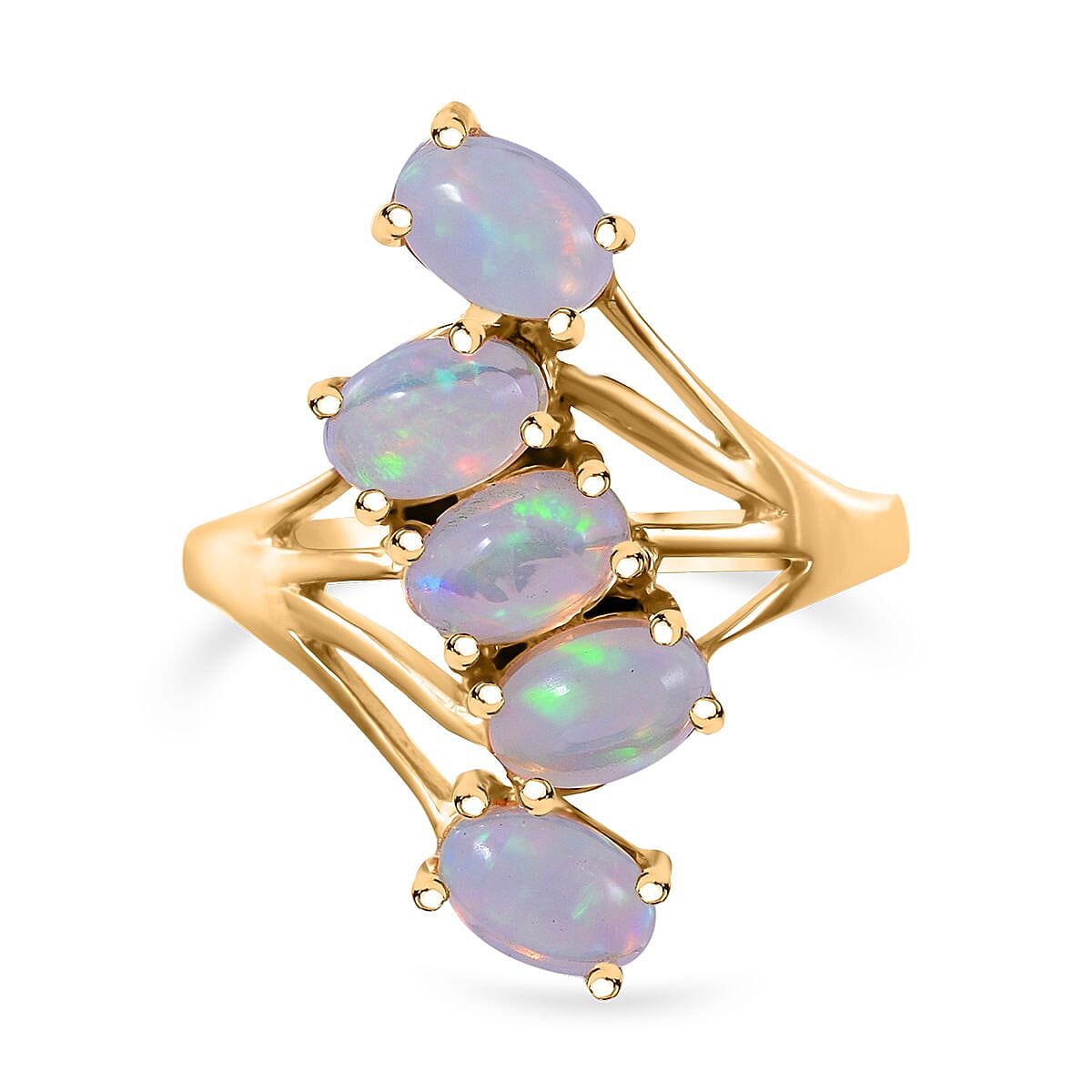 Premium Ethiopian Welo Opal 1.50 ctw 5 Stone Ring in Vermeil Yellow Gold Over Sterling Silver (Size 8.0)