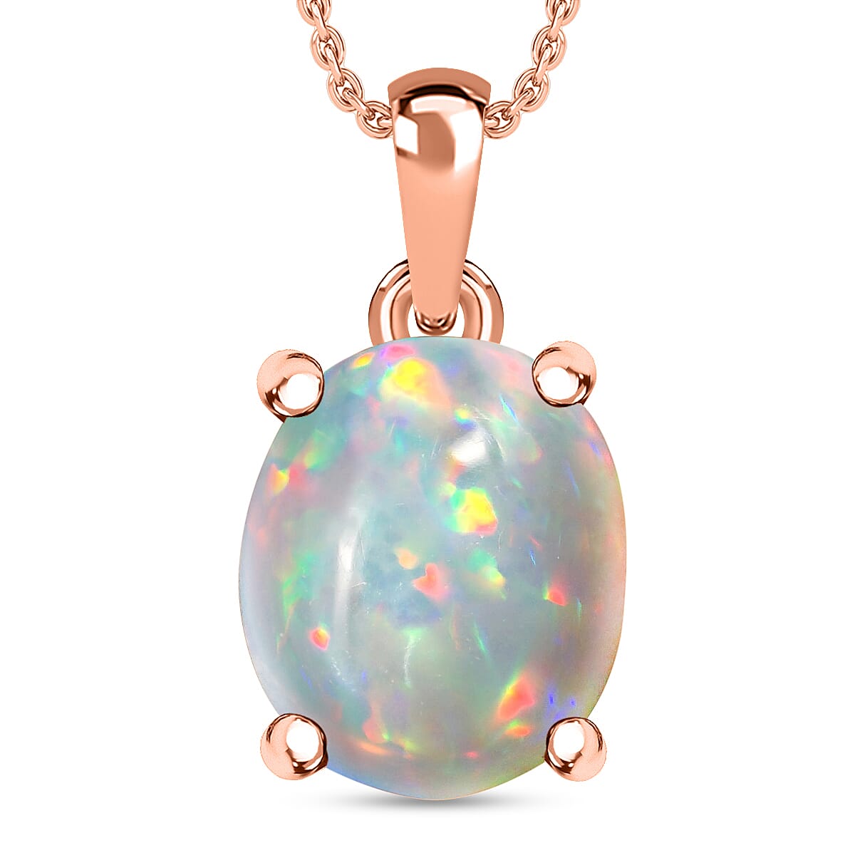 Premium Ethiopian Welo Opal 2.40 ctw Solitaire Pendant without Chain in Vermeil Rose Gold Over Sterling Silver (Del. in 10-12 Days)