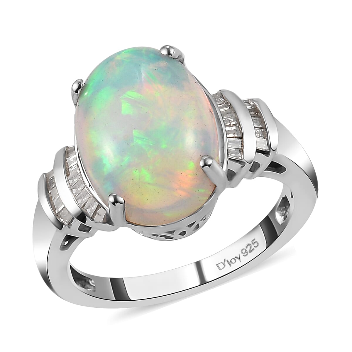 Premium Ethiopian Welo Opal and Diamond Ring in Platinum Over Sterling Silver (Size 6.0) 3.40 ctw