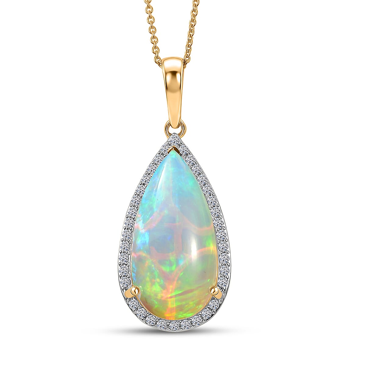 Premium Ethiopian Welo Opal and Luxuriant Lab Grown Diamond G-H SI 7.10 ctw Pendant Necklace in 10K Yellow Gold 20 Inches