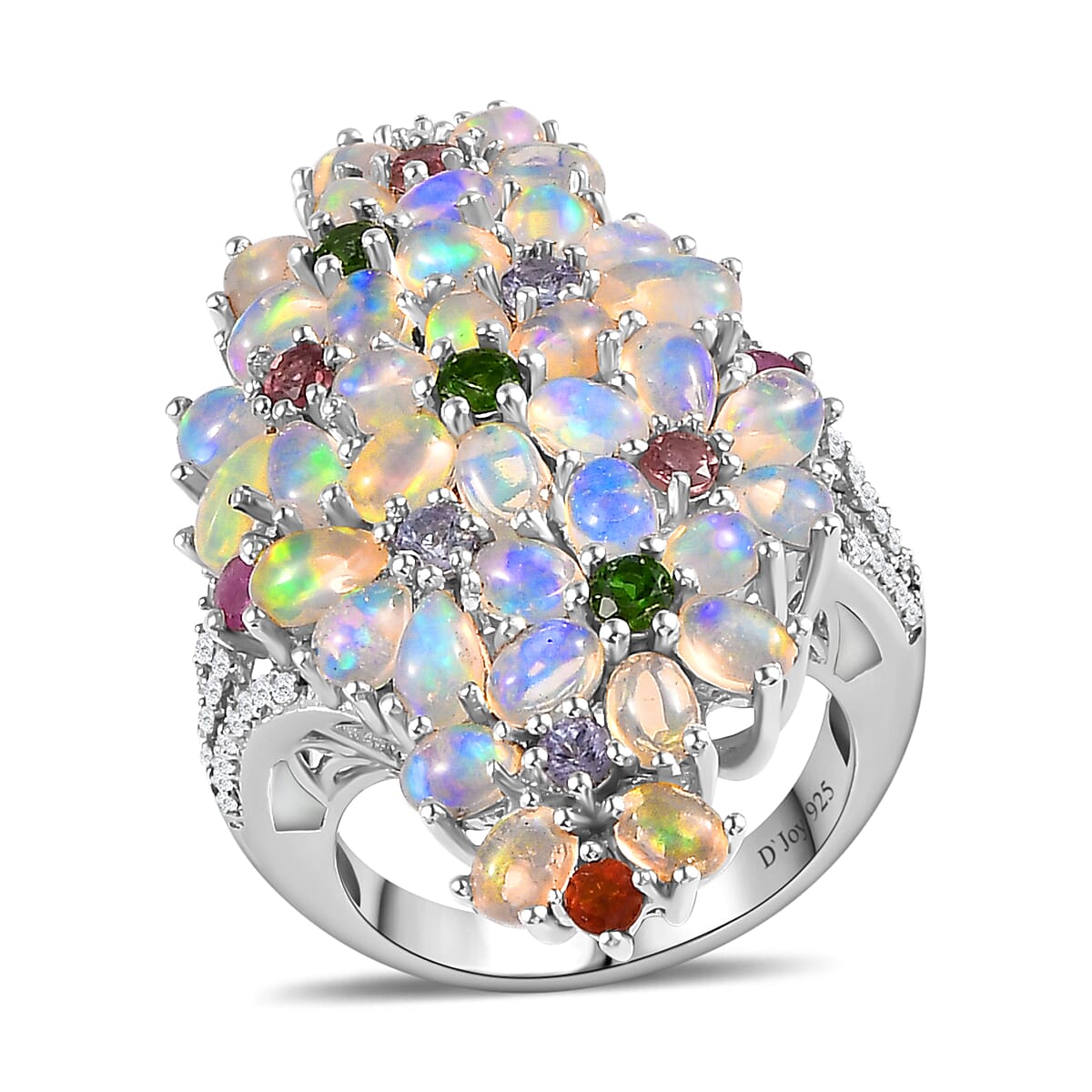 Premium Ethiopian Welo Opal and Multi Gemstone Ring in Platinum Over Sterling Silver (Size 8.0) 5.75 ctw
