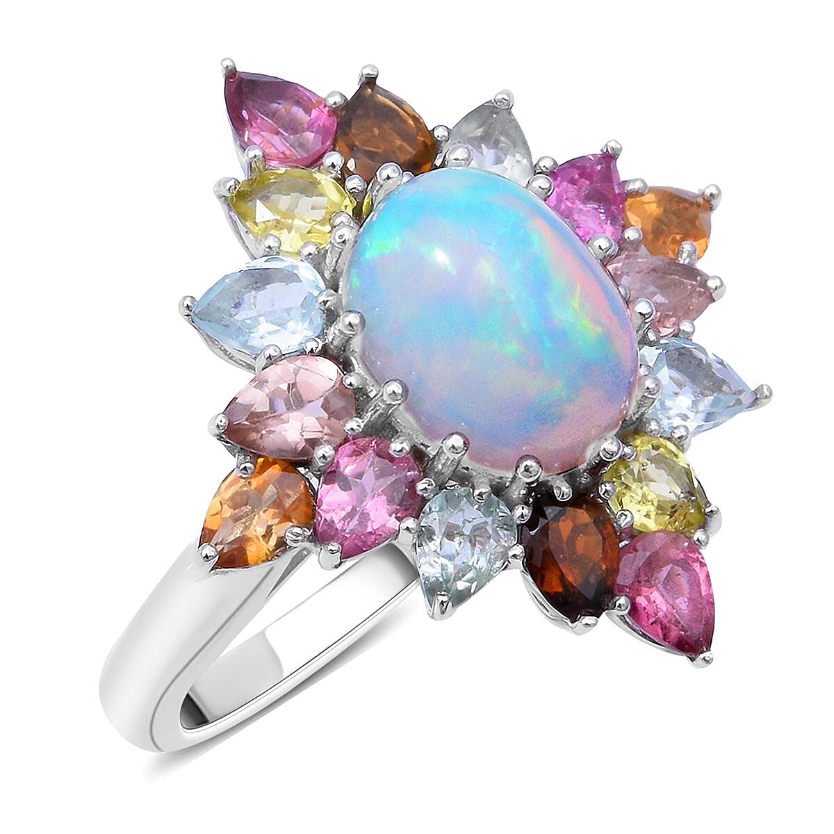 Premium Ethiopian Welo Opal and Multi-Tourmaline Floral Ring in Platinum Over Sterling Silver (Size 11.0) 4.15 ctw
