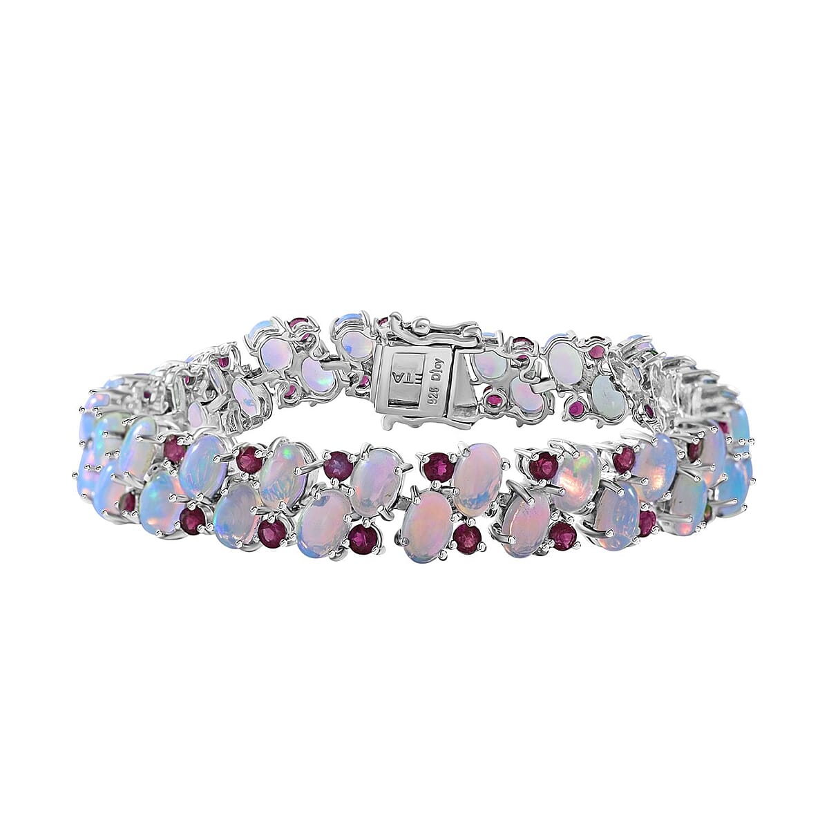 Premium Ethiopian Welo Opal and Niassa Ruby (FF) Bracelet in Platinum Over Sterling Silver (6.50 In) 17.20 ctw