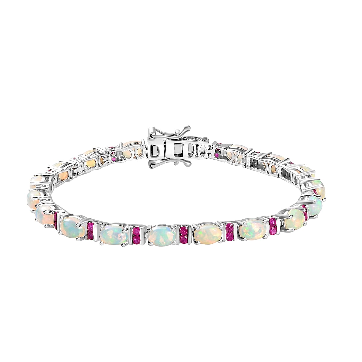 Premium Ethiopian Welo Opal and Niassa Ruby (FF) Bracelet in Platinum Over Sterling Silver (6.50 In) 7.90 ctw