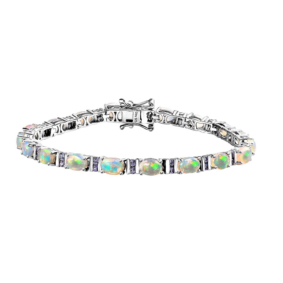 Premium Ethiopian Welo Opal and Tanzanite Bracelet in Platinum Over Sterling Silver (6.50 In) 6.80 ctw