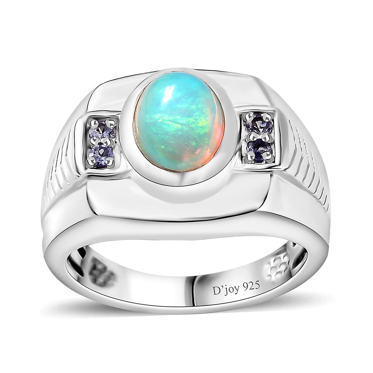 Premium Ethiopian Welo Opal and Tanzanite Men's Ring in Platinum Over Sterling Silver (Size 9.0) 1.40 ctw
