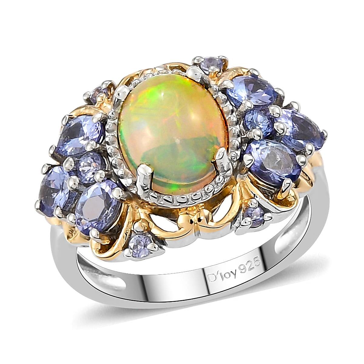 Premium Ethiopian Welo Opal and Tanzanite Ring in Vermeil Yellow Gold and Platinum Over Sterling Silver (Size 6.0) 2.15 ctw