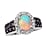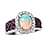 This premium Ethiopian Welo opal ring features a prong-set oval-shaped opal at its center, encircled by a halo of round zircon stones. This zircon ring is accented with round green sapphires along the shank. Crafted in platinum over sterling silver, it ensures durability.