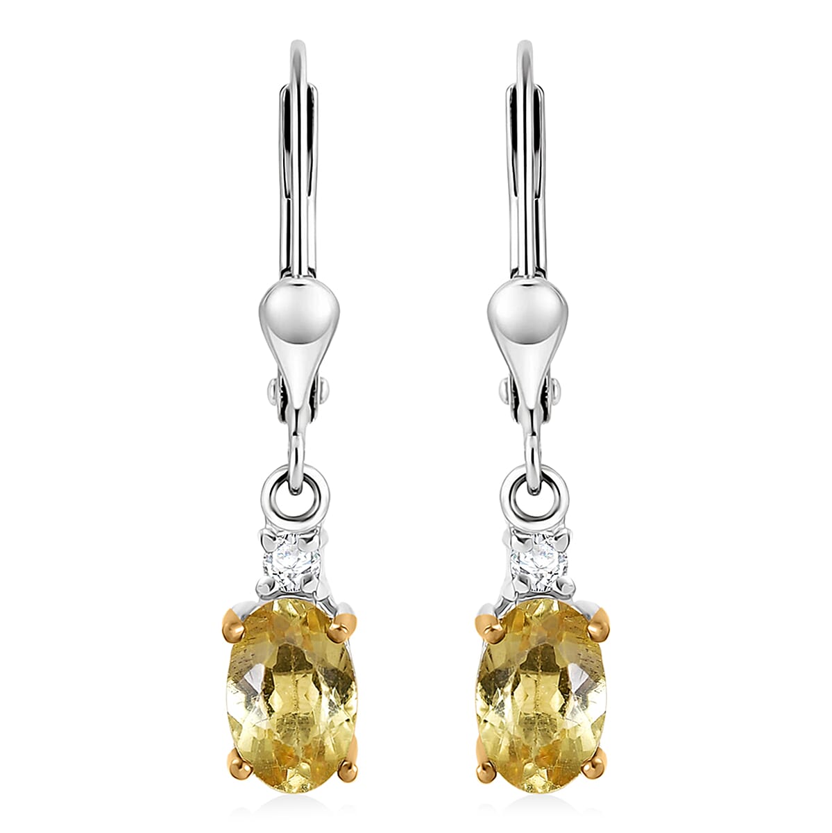 Premium Golden Apatite and Luxuriant Lab Grown Diamond G-H SI 0.90 ctw Golden Focus Earrings in 18K Vermeil YG and Rhodium Over Sterling Silver