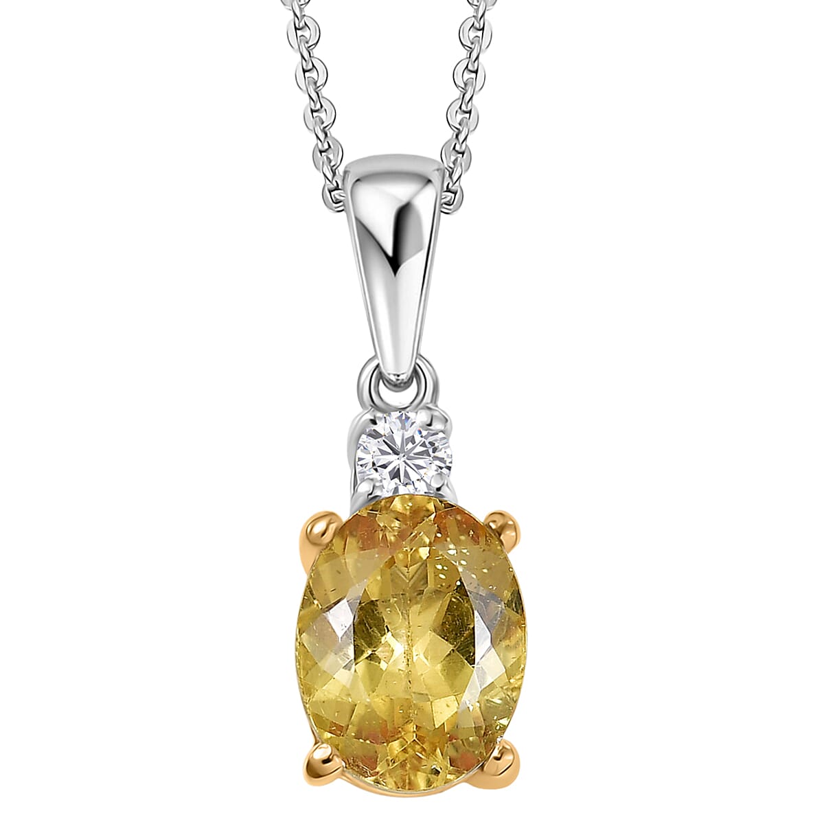 Premium Golden Apatite and Luxuriant Lab Grown Diamond G-H SI 2.10 ctw Golden Focus Pendant Necklace in 18K Vermeil YG and Rhodium Over Sterling Silver 20 Inches