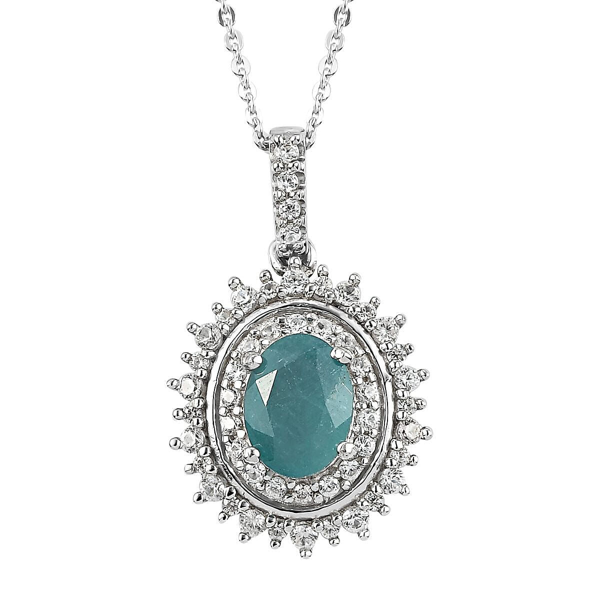 Premium Grandidierite and Natural White Zircon Double Halo Pendant Necklace 20 Inches in Platinum Over Sterling Silver 2.00 ctw