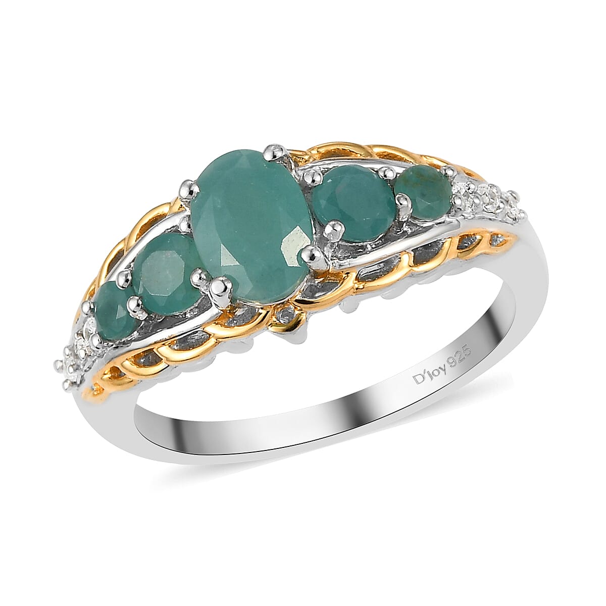 Premium Grandidierite and Natural White Zircon Ring in Vermeil Yellow Gold and Platinum Over Sterling Silver (Size 8.0) 1.40 ctw