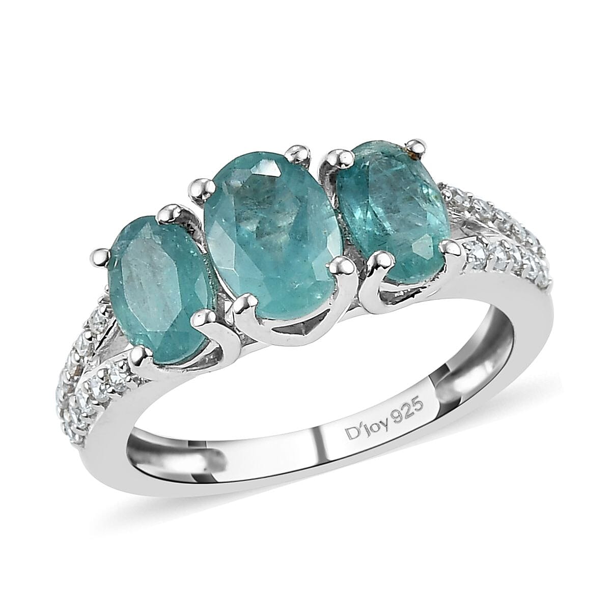 Premium Grandidierite and Natural White Zircon Trilogy Ring in Platinum Over Sterling Silver (Size 7.0) 1.85 ctw