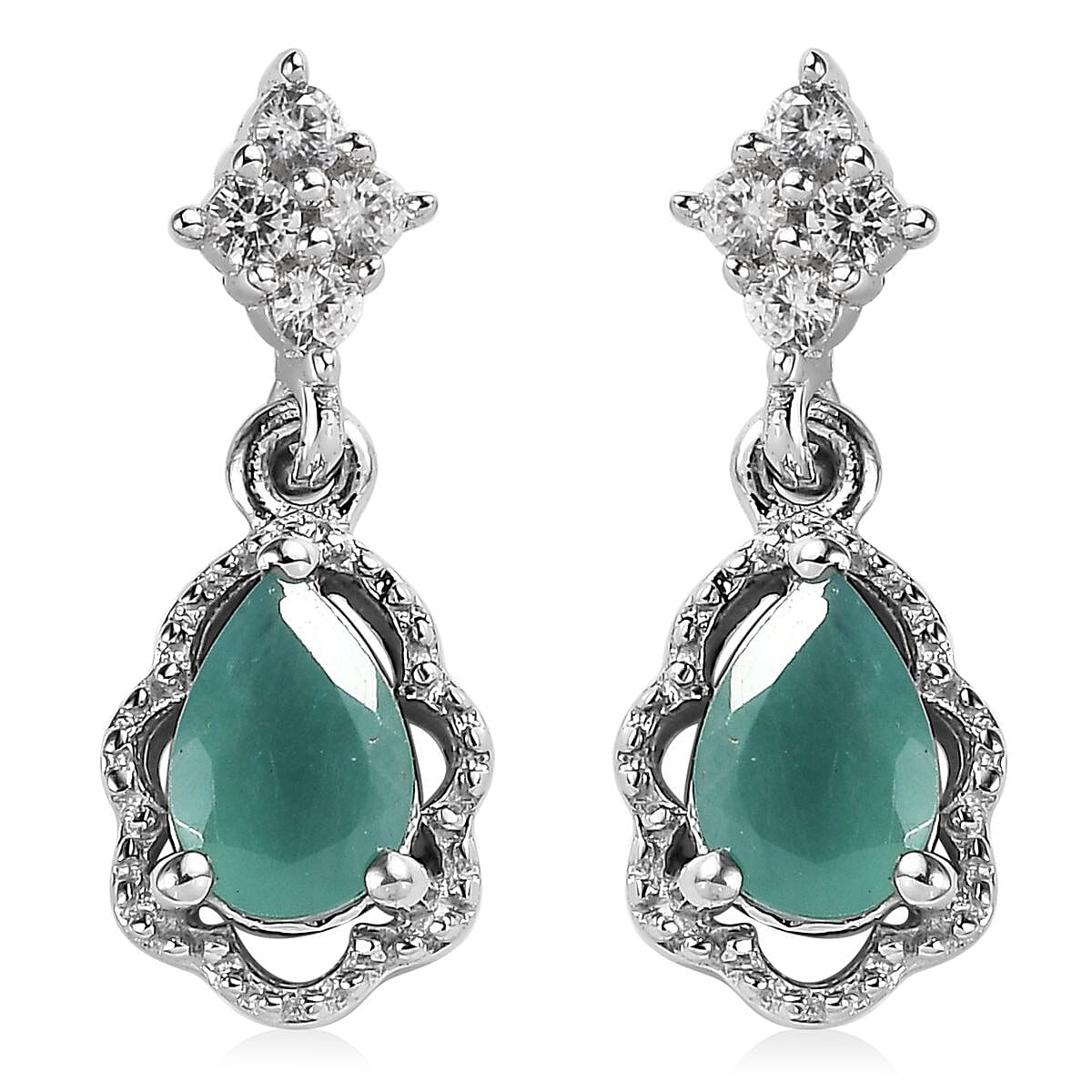 Premium Grandidierite and White Zircon Earrings in Platinum Over Sterling Silver 0.90 ctw