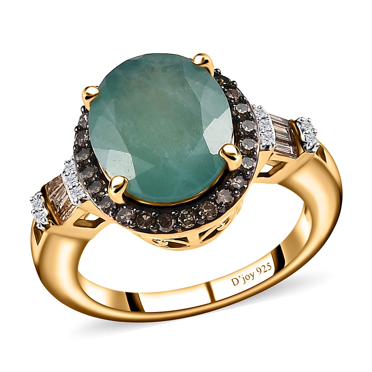 Premium Grandidierite, Natural Champagne and White Diamond Halo Ring in Rhodium & Vermeil Yellow Gold Over Sterling Silver (Size 7.0) 5.50 ctw