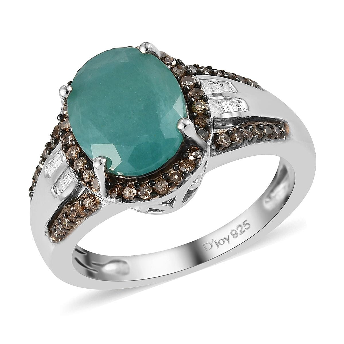 Inspired by a halo design, this Grandidierite ring symbolizes strength and endurance. The natural champagne diamonds encircle the center premium gemstone, making it look bigger, a characteristic feature of a halo design. The shank displays the beauty of baguette-shaped white diamonds highlighted by champagne diamonds giving a luxurious appearance to the piece. Grandidierite is a rare gem that ranks 7 to 7.5 on the Mohs scale of hardness. This trichroic gem showcases three layers of different colors making this ring more stunning.