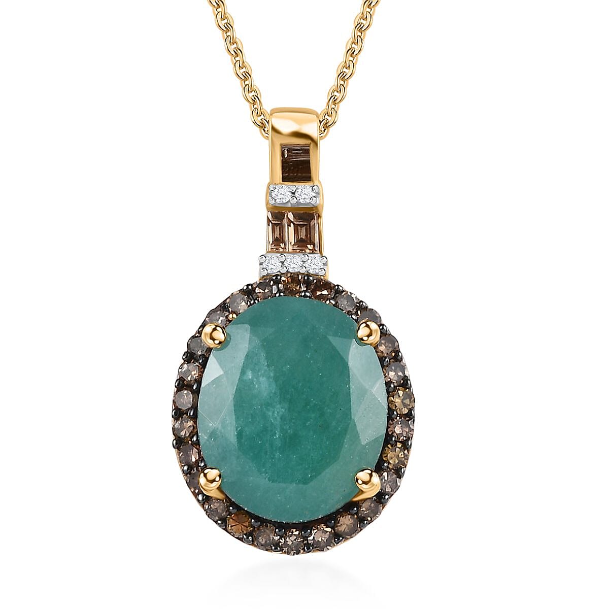 Premium Grandidierite, Natural White and Champagne Diamond Halo Pendant Necklace 20 Inches in Vermeil Yellow Gold Over Sterling Silver 5.40 ctw