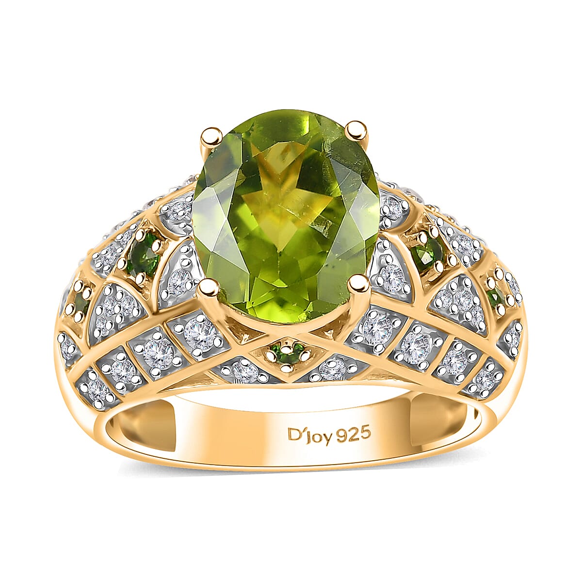 Premium Hebei Peridot and Multi Gemstone 3.30 ctw Vintage Architecture Ring in 18K Vermeil Yellow Gold Over Sterling Silver (Size 9.0)