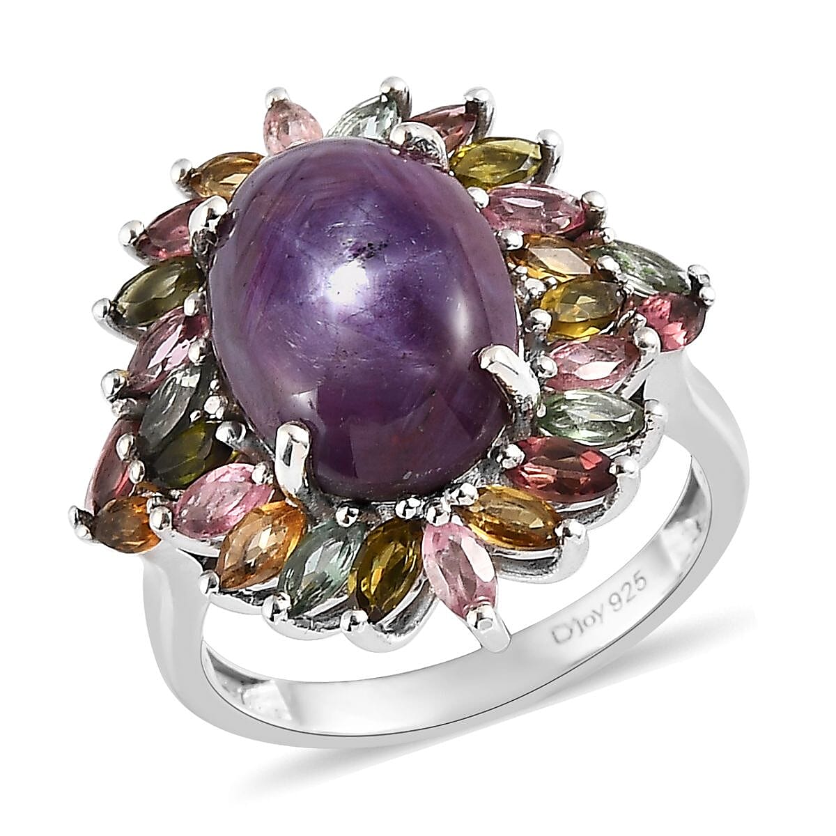 Premium Indian Star Ruby and Multi-Tourmaline Floral Ring in Platinum Over Sterling Silver (Size 9.0) 11.80 ctw