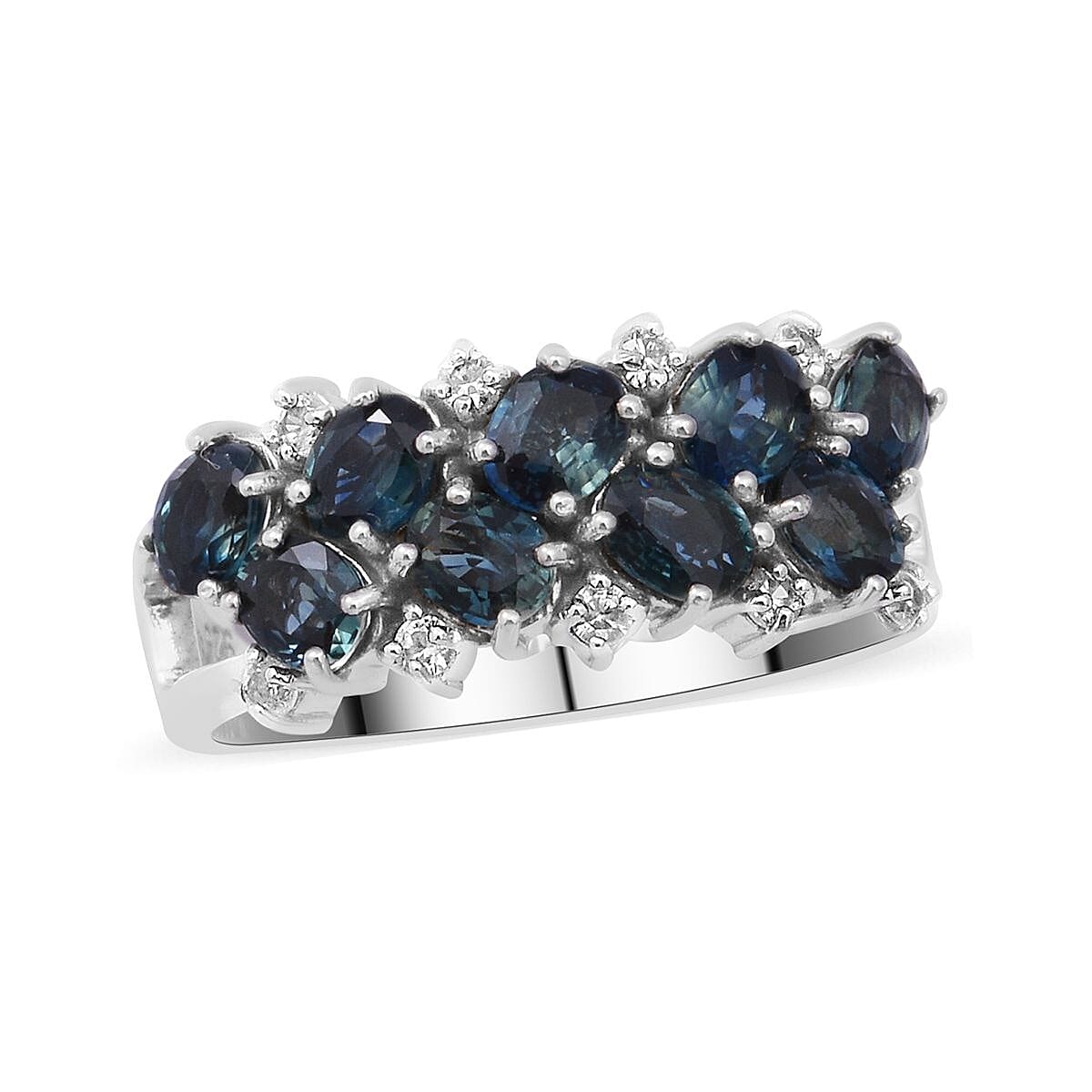 Premium Indigo Sapphire and Natural White Zircon Ring in Platinum Over Sterling Silver (Size 5.0) 2.20 ctw