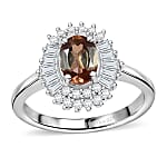 Premium Jenipapo Andalusite, Moissanite Floral Ring in Rhodium Over Sterling Silver (Size 10.0) 1.25 ctw