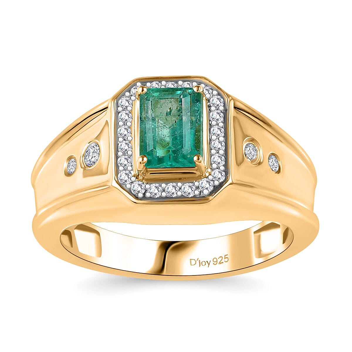 Premium Kagem Zambian Emerald and Moissanite 1.25 ctw Men's Ring in 18K Vermeil Yellow Gold Over Sterling Silver (Size 12.0)