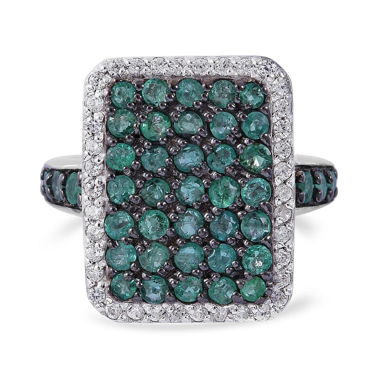 Premium Kagem Zambian Emerald and White Zircon 2.20 ctw Ring in Platinum Over Sterling Silver (Size 8.0)