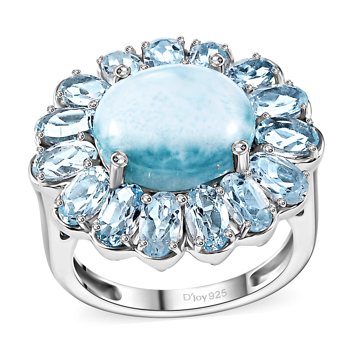 Premium Larimar and Sky Blue Topaz 9.70 ctw Blooming Flower Ring in Rhodium Over Sterling Silver (Size 6.0)