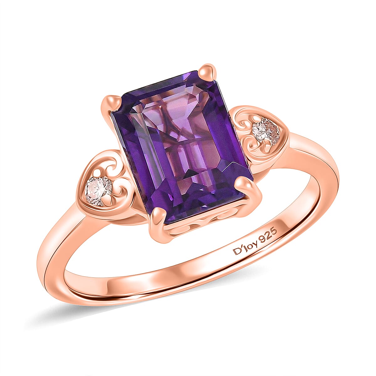 Premium Lusaka Amethyst and Luxuriant Lab Grown Pink Diamond E-F VS 2.40 ctw Elegant Heart Ring in 18K Vermeil Rose Gold Over Sterling Silver (Size 10.0)