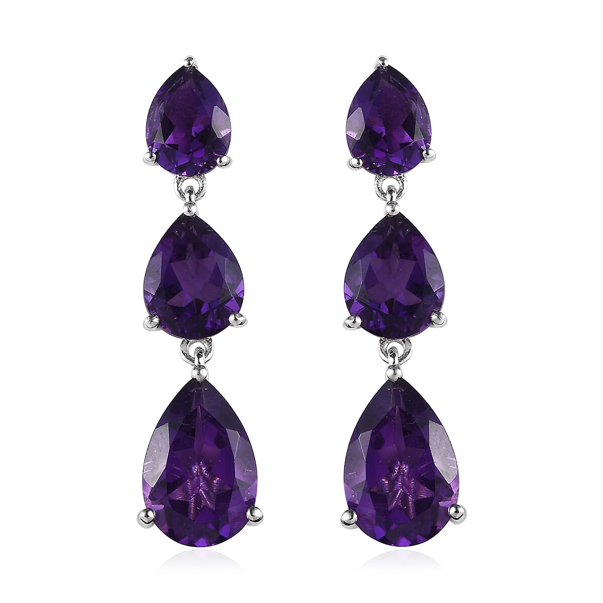 Premium Lusaka Amethyst Dangling Earrings in Platinum Over Sterling Silver 10.75 ctw