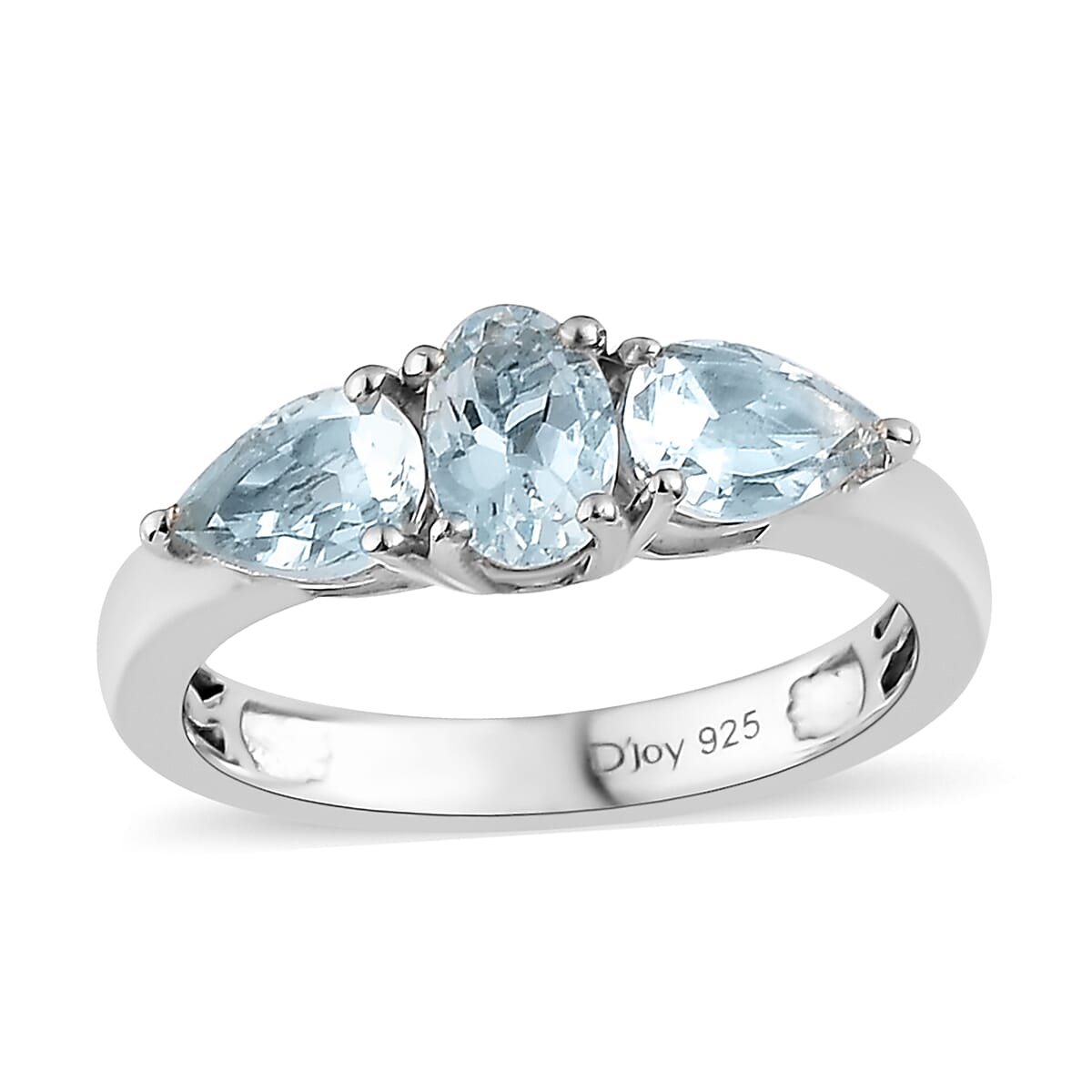 Premium Madagascar Aquamarine 3 Stone Ring in Platinum Over Sterling Silver (Size 8.0) 1.10 ctw