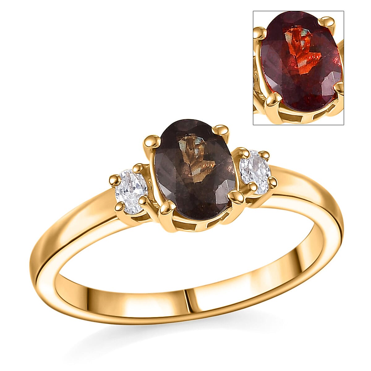 Premium Madagascar Color Change Garnet and Luxuriant Lab Grown Diamond G-H SI 1.10 ctw Ring in 18K Vermeil Yellow Gold Over Sterling Silver (Size 10.0)
